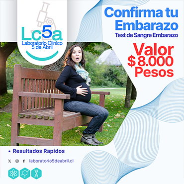 Realizamos el estudio de la Beta HCG en forma cuantitativa por metodología de quimioluminiscencia. Se extrae una muestra de sangre de la paciente en ayunas. Valor del Examen 8.000 pesos. Puede ver los resultados online, ingresando a nuestro sitio web; http://laboratorio5deabril.cl/ Casa Matriz: Centro Medico Cordillera, Av. Argentina 648, Chillán Toma de Muestra: Centro Medico 5 de Abril, Calle 5 de abril 570, Chillán.